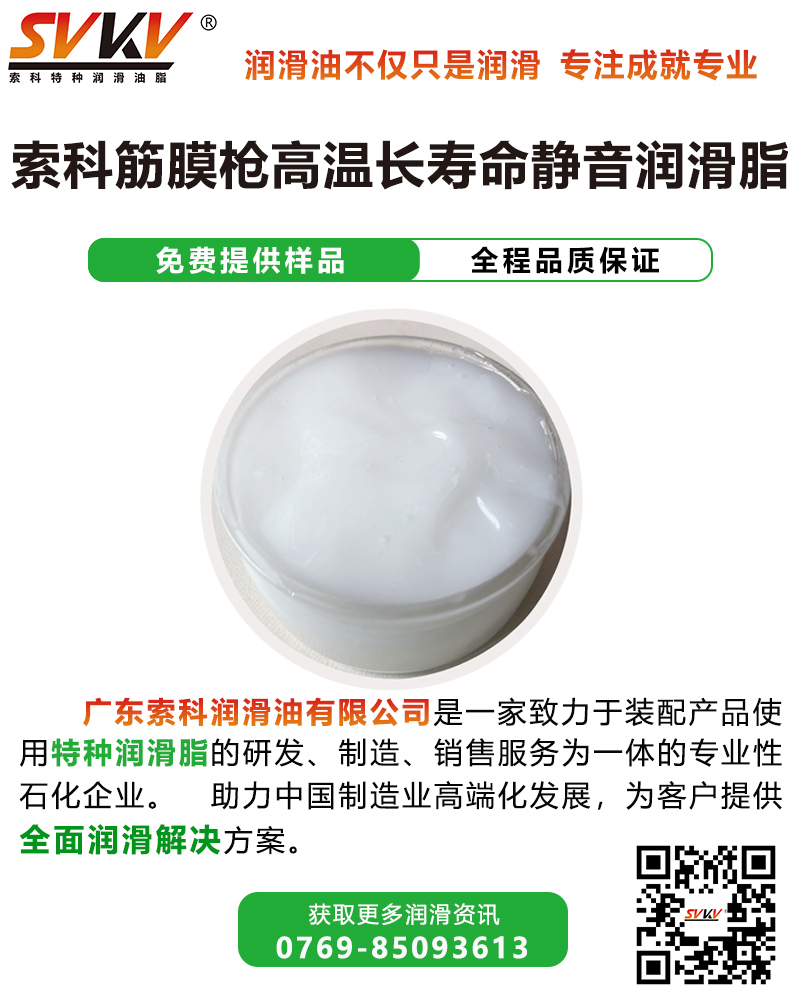 索科SVKV筋膜槍高溫長壽命靜音潤滑脂選用高性能基礎(chǔ)油,并添加多種高效抗氧化、抗腐蝕等添加劑精制而成,是專為筋膜槍零部件研發(fā)的潤滑油脂。索科SVKV筋膜槍高溫長壽命靜音潤滑脂能有效減少筋膜槍軸承套筒磨損,降低噪音,以達(dá)到延長壽命的效果。