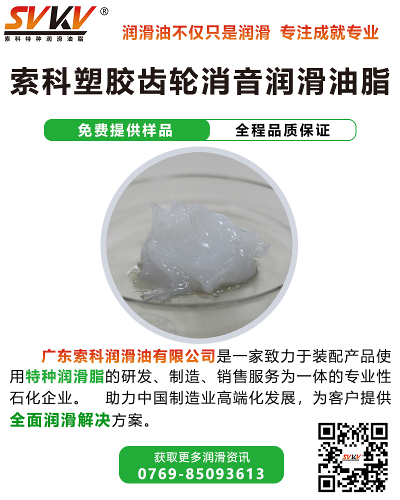 索科SVKV塑膠齒輪消音潤(rùn)滑油脂選用高性能基礎(chǔ)油,并添加多種高效抗氧化、抗腐蝕等添加劑精制而成,是專為塑膠齒輪而研制。索科SVKV塑膠齒輪消音潤(rùn)滑油脂能有效減少齒輪磨損,降低噪音,達(dá)到延長(zhǎng)齒輪壽命的效果。
