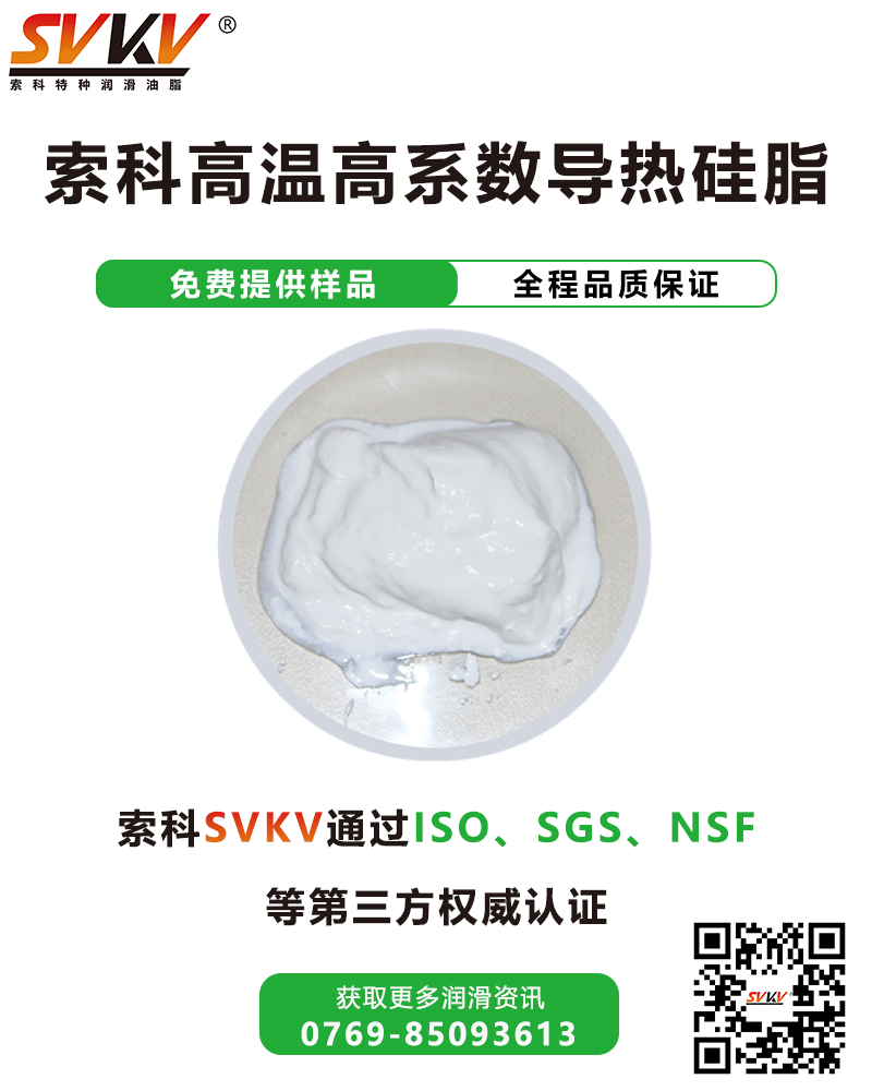 索科SVKV高溫高系數(shù)導(dǎo)熱硅脂以聚硅氧烷為基礎(chǔ)輔以高導(dǎo)熱填料精制而成,安全環(huán)保,性能穩(wěn)定,既具有優(yōu)異的電絕緣性,又具有優(yōu)異的導(dǎo)熱性,揮發(fā)性小,可薄膜涂覆。